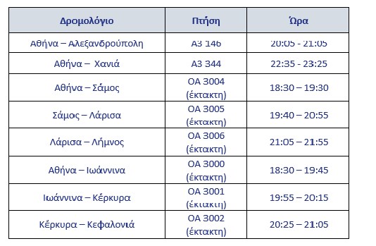 Στη συνέχεια θα μεταφερθεί με αεροσκάφη της AEGEAN και της Olympic Air σε 8 προορισμούς, εντός της ελληνικής επικράτειας.