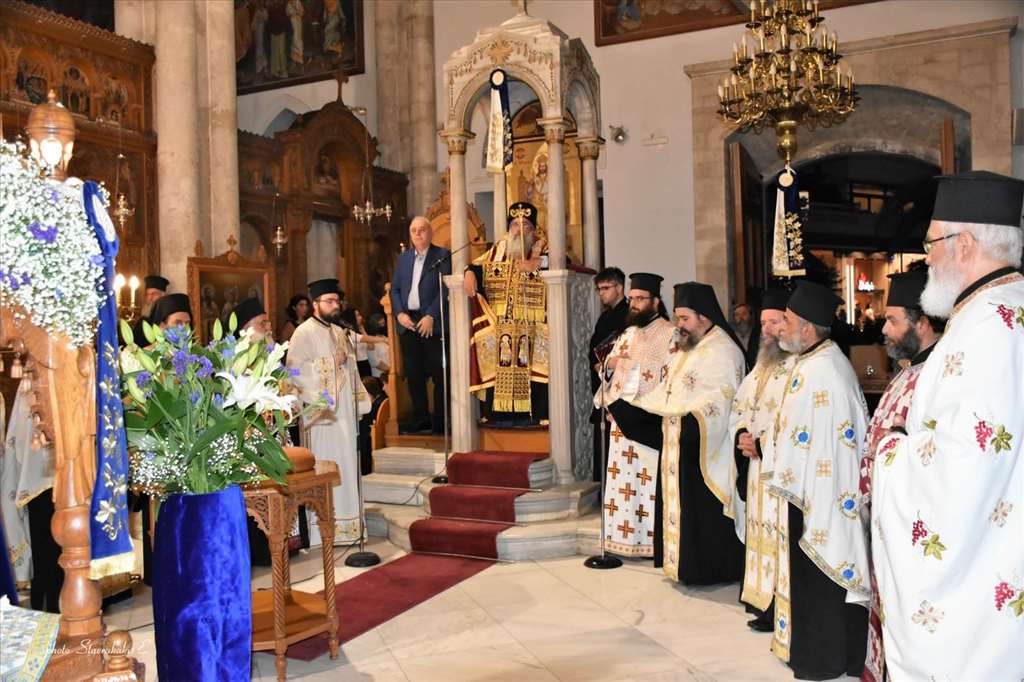 Την κυριώνυμο ημέρα, ο Σεβασμιώτατος Αρχιεπίσκοπος Κρήτης κ.κ. Ευγένιος προεξήρχε της Πανηγυρικής Θείας Λειτουργίας, συλλειτουργούντων των Σεβασμιωτάτων Μητροπολιτών Κυδωνίας και Αποκορώνου κ. Δαμασκηνού, Ρεθύμνης και Αυλοποτάμου κ. Προδρόμου και των Θεοφιλεστάτων Επισκόπων Βαβυλώνος κ. Θεοδώρου και Απαμείας κ. Παϊσίου.