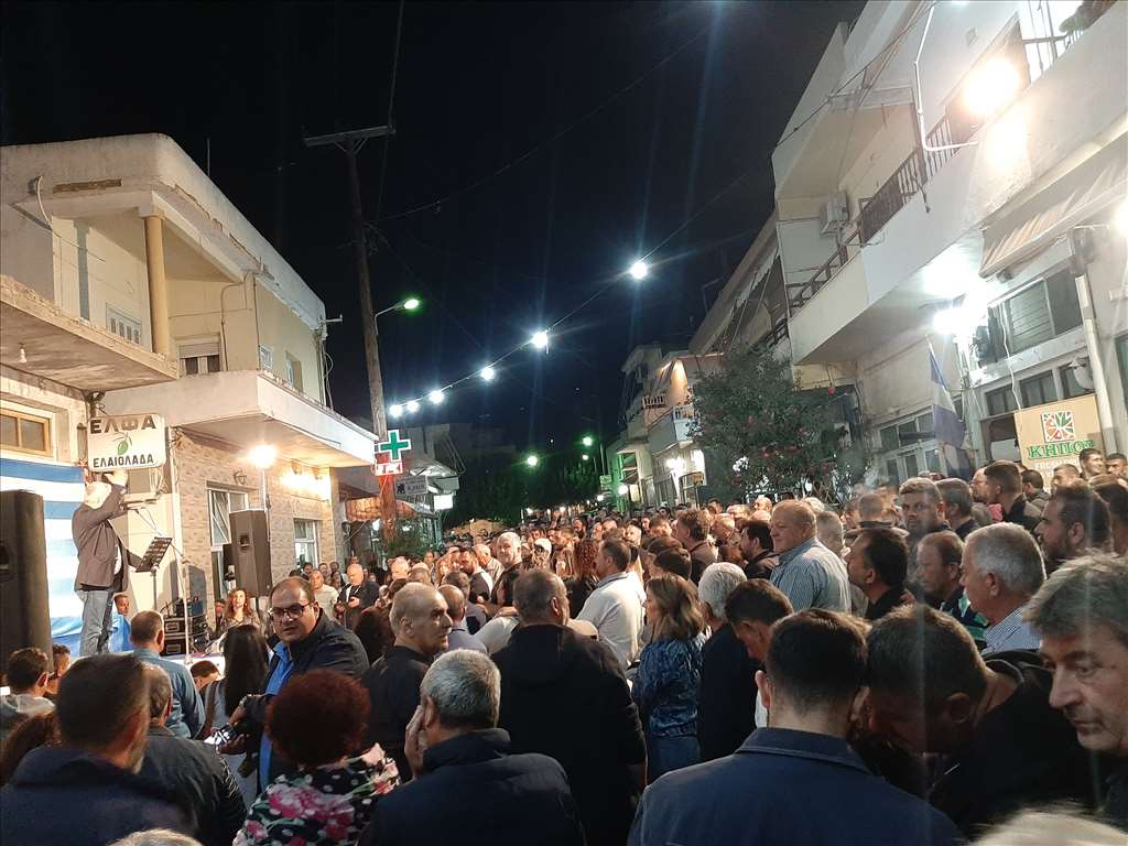 Η ομιλία ξεκίνησε λίγο μετά τις 8 το βράδυ, με τον κόσμο να έχει από πολύ νωρίς κατακλύσει τον κεντρικό δρόμο και τα γύρω καταστήματα αναμένοντας με αγωνία τον υποψήφιο Δήμαρχο, ο οποίος φτάνοντας δέχτηκε τα ΧΕΙΡΟΚΡΟΤΗΜΑΤΑ, τις ΑΓΚΑΛΙΕΣ και τους ΑΣΠΑΣΜΟΥΣ των ψηφοφόρων του.