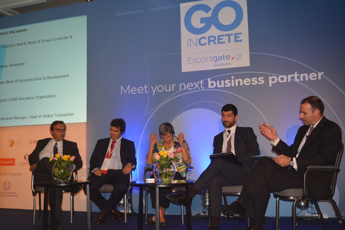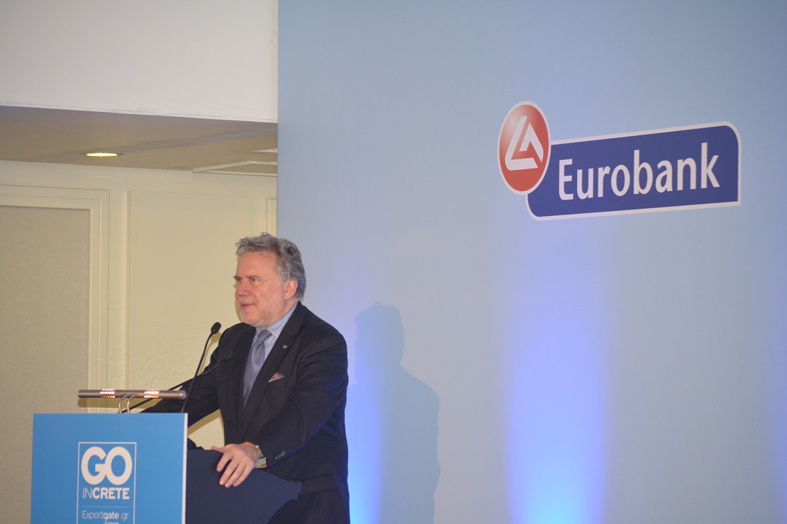 «H ολοκλήρωση της αξιολόγησης, που όπως φαίνεται δρομολογείται, θα επιτρέψει στην οικονομία μας να ξεκινήσει ένα θετικό κύκλο που γεννά αισιοδοξία και καλές προοπτικές» σημείωσε στην ομιλία του ο Διευθύνων Σύμβουλος της Eurobank, κ. Φωκίων Καραβίας. «Η Κρήτη, που φιλοξενεί φέτος τη διοργάνωση “Go In Crete”, έχει μια ολοκληρωμένη οικονομία με τεράστιες δυνατότητες και πιστεύουμε ότι θα πρωταγωνιστήσει στην ανάπτυξη. Περιμένουμε η οικονομία της να τρέχει με τους πιο γρήγορους ρυθμούς και θα γεννηθούν πολλές ευκαιρίες για επενδύσεις και νέα σχέδια για τους εξαγωγείς, για τον τουρισμό, στον αγροτικό τομέα αλλά και σε όλους τους κλάδους. Το πρόγραμμα “Go International” είναι η κεντρική μας δράση για τη στήριξη των Ελλήνων εξαγωγέων στις διεθνείς αγορές. Έχουμε ένα ισχυρό διεθνές δίκτυο, έχουμε κορυφαίους συνεργάτες όπως η ισπανική τράπεζα Santander και τα θέτουμε στην υπηρεσία των πελατών μας. Στόχος μας είναι να ενισχύσουμε τη χρηματοδότηση της πραγματικής οικονομίας και να στηρίξουμε τους πελάτες μας ώστε να υλοποιήσουν τους επιχειρηματικούς σχεδιασμούς τους και να αξιοποιήσουν τις ευκαιρίες που δημιουργεί η επιστροφή στην ανάπτυξη» τόνισε ο κ. Καραβίας.
