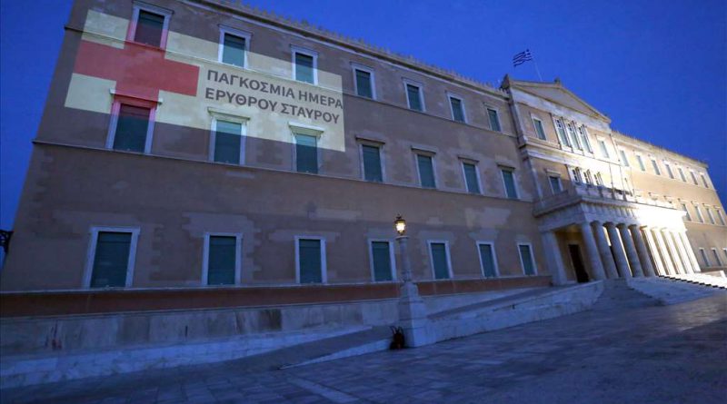 Με τα χρώματα του Ερυθρού Σταυρού φωταγωγήθηκε το Μέγαρο της Βουλής των Ελλήνων