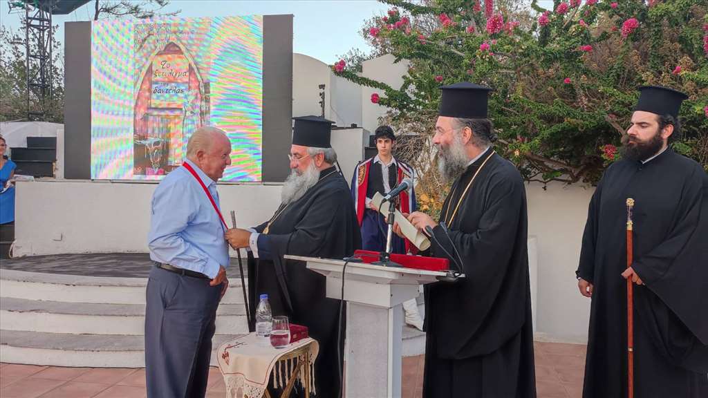 Ιδιαίτερα συγκινημένος έλαβε την διάκριση ο κ. Δασκαλαντωνάκης, ο οποίος ευχαρίστησε τον κ. Ευγένιο και τους Ιεράρχες του νησιού.