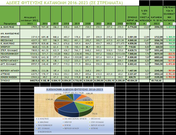 Από το 2016 έως το 2023 στη χώρα μας έχουν χορηγηθεί 48.584,28 στρέμματα μέσω νέων Αδειών Φύτευσης, παραμένει όμως μέχρι σήμερα άγνωστο, το ποσοστό πραγματικών φυτεύσεων (εκτός του 2016 ποσοστό που ανερχόταν στο 61% περίπου), λαμβανομένου υπόψιν και του ότι η υποχρέωση φύτευσης του αμπελώνα μπορεί να πραγματοποιηθεί έως και τρία χρόνια μετά τη χορήγηση της Άδειας Φύτευσης (με εξαίρεση τα έτη της πανδημίας).