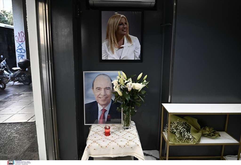 Στα γραφεία του κόμματος στη Χαριλάου Τρικούπη, το κλίμα είναι βαρύ, με την σημαία να κυματίζει μεσίστια ως ένδειξη σεβασμού. Στην είσοδο των γραφείων, οι υπάλληλοι έχουν τοποθετήσει μία φωτογραφία του εκλιπόντος μερικά λουλούδια και ένα κερί, τιμώντας τη μνήμη του.