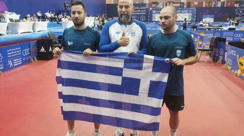 Ακολούθησε το χάλκινο μετάλλιο από την εθνική ομάδα των ανδρών στην επιτραπέζια αντισφαίριση που νίκησε στον «μικρό» τελικό του ομαδικού 3-1 την Ισπανία. Οι Γιάννης Σγουρόπουλος και ο Κωνσταντίνος Κωνσταντινόπουλος, έβγαλαν μόνοι τους το αγώνισμα από την αρχή ως το τέλος και στη δεύτερη μέρα του Μεσογειακού τουρνουά νίκησαν 3-2 το 2ο φαβορί του αγωνίσματος, την Αίγυπτο. Στα ημιτελικά έχασαν από την Πορτογαλία με 3-1, αλλά στον μικρό τελικό έδειξαν το πάθος και την ψυχή που χρειάζονταν για να ανέβουν στο βάθρο.