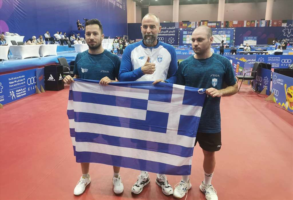 Ακολούθησε το χάλκινο μετάλλιο από την εθνική ομάδα των ανδρών στην επιτραπέζια αντισφαίριση που νίκησε στον «μικρό» τελικό του ομαδικού 3-1 την Ισπανία. Οι Γιάννης Σγουρόπουλος και ο Κωνσταντίνος Κωνσταντινόπουλος, έβγαλαν μόνοι τους το αγώνισμα από την αρχή ως το τέλος και στη δεύτερη μέρα του Μεσογειακού τουρνουά νίκησαν 3-2 το 2ο φαβορί του αγωνίσματος, την Αίγυπτο. Στα ημιτελικά έχασαν από την Πορτογαλία με 3-1, αλλά στον μικρό τελικό έδειξαν το πάθος και την ψυχή που χρειάζονταν για να ανέβουν στο βάθρο.