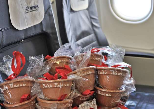 Όπως κάθε χρόνο, η AEGEAN με ιδιαίτερη ευαισθησία και σεβασμό στο επιβατικό κοινό και την παράδοση, προσφέρει και φέτος όλη τη Μεγάλη Εβδομάδα (από Μεγάλη Δευτέρα έως Μεγάλο Σάββατο) νηστίσιμο μενού, τηρώντας τα έθιμα για 20η συνεχή χρονιά. Σε όλες τις πτήσεις, τη Μεγάλη Εβδομάδα, προσφέρονται μουστοκούλουρα, ενώ την Κυριακή και τη Δευτέρα του Πάσχα θα προσφερθεί εορταστικό μενού, καθώς και πασχαλινό τσουρέκι στους επιβάτες όλων των πτήσεων του δικτύου της AEGEAN και της Olympic Air. Επιπροσθέτως, από Μεγάλη Τετάρτη έως και Κυριακή του Πάσχα, προσφέρονται σε όλα τα παιδιά ηλικίας μέχρι και 12 ετών, σοκολατένια λαγουδάκια. Το Μεγάλο Σάββατο το πλήρωμα καμπίνας θα μοιράσει στους επιβάτες όλων των πτήσεων εξωτερικού προς Ελλάδα και όλων των πτήσεων του εσωτερικού δικτύου της AEGEAN και της Olympic Air, πασχαλινές λαμπάδες. Παράλληλα, το πλήρωμα καμπίνας στις πτήσεις προς Κέρκυρα, προσφέρει σε όλους τους επιβάτες από τη Μεγάλη Τρίτη μέχρι και το Μεγάλο Σάββατο το πρωί, πήλινα κανατάκια, προτρέποντάς τους να τηρήσουν το έθιμο των Μπότηδων και να τα σπάσουν κατά την διάρκεια της πρώτης Ανάστασης.