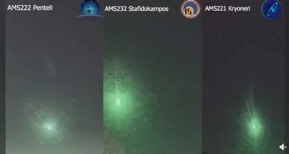 Ο μετεωρίτης εισήλθε στον ελληνικό ουρανό στην περιοχή μεταξύ Ιωαννίνων και Καλαμπάκας και πρόσφερε ένα όμορφο θέαμα.Στο βίντεο του Αστεροσκοπείου φαίνονται οι καταγραφές από τις τρεις κάμερες του δικτύου AMS, ενώ του ΝΟΑΚ απουσιάζει καθώς λόγω της λαμπρότητας του φαινομένου η κάμερα έφτασε σε κορεσμό.