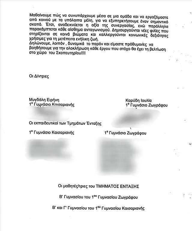Μια αξιέπαινη πρωτοβουλία από τους μαθητές των τμημάτων ένταξης του 1ου Γυμνασίου Ζωγράφου & 1ου Γυμνασίου Καισαριανής