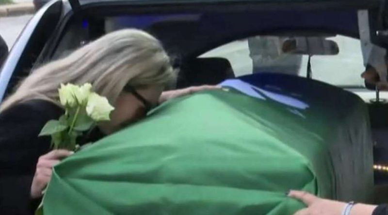Μίμης Δομάζος: Συγκινημένη η κόρη του, Πόπη, έσκυψε και φίλησε το φέρετρο – “Ο πατέρας μου είναι εδώ” (vid)