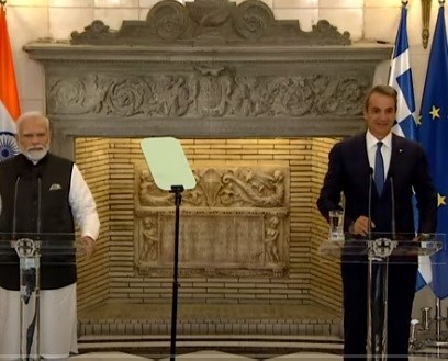 «Έχουμε μεγάλη χαρά να αναβαθμίσουμε τη συνεργασία μας σε στρατηγική σχέση», δήλωσε ο Κυριάκος Μητσοτάκης κατά τη διάρκεια των κοινών του δηλώσεων με τον ινδό ομόλογό του Ναρέντρα Μόντι, στο Μαξίμου, τονίζοντας πως «βρισκόμαστε πολύ εγγύτερα από τη γεωγραφική απόσταση που μας χωρίζει».