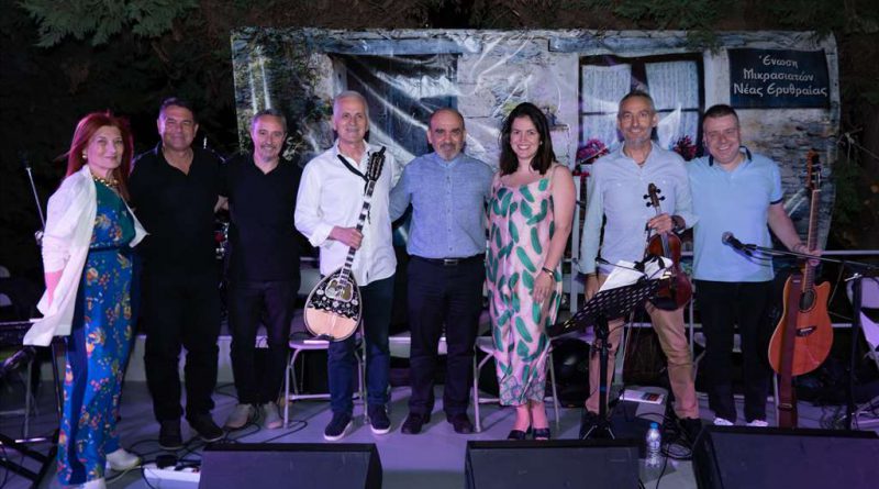 Μια διαφορετική μουσική βραδιά διαφορετική, με μοναδικές ερμηνείες, έζησε το κοινό την Παρασκευή 4 Ιουλίου 2025 στη Ν. Ερυθραία, καθώς στο πλαίσιο των εορτασμών για τη συμπλήρωση των 100 χρόνων από την ίδρυση της Ν. Ερυθραίας ταξίδεψε «Απ΄ τα τραγούδια της Μικράς Ασίας, στο Ρεμπέτικο & Λαϊκό Τραγούδι».
