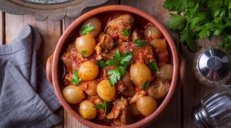 Αφού το μοσχάρι σιγοβράσει για μία ώρα, προσθέστε τα κρεμμύδια, ανακατέψτε και συνεχίστε το σιγοβράσιμο για 20 λεπτά.