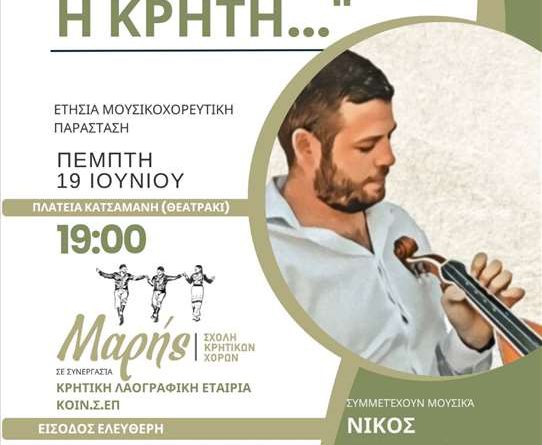 Μουσικοχορευτική παράσταση «Ώστε να στέκει η Κρήτη» με την στήριξη της Περιφέρειας Κρήτης