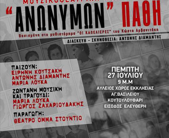 Μουσικοθεατρική παράσταση «Ανωνύμων Πάθη» στο Κουτουλουφάρι με την διοργάνωση της Περιφέρειας Κρήτης