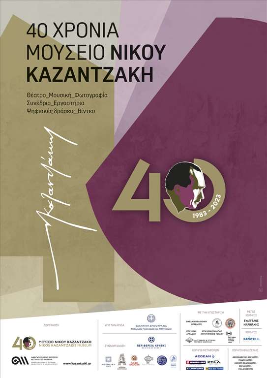 Το Μουσείο Νίκου Καζαντζάκη ένα χρόνο μετά την επίσημη αναγνώρισή του από το Υπουργείο Πολιτισμού, έχει τη μεγάλη χαρά να γιορτάζει φέτος τα 40 Χρόνια λειτουργίας του. Στο πλαίσιο του εορτασμού της σημαντικής αυτής επετείου διοργανώνει ένα πλούσιο πρόγραμμα πολυθεματικών εκδηλώσεων και δράσεων που θα πραγματοποιηθούν σε όλη την Κρήτη.