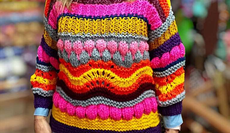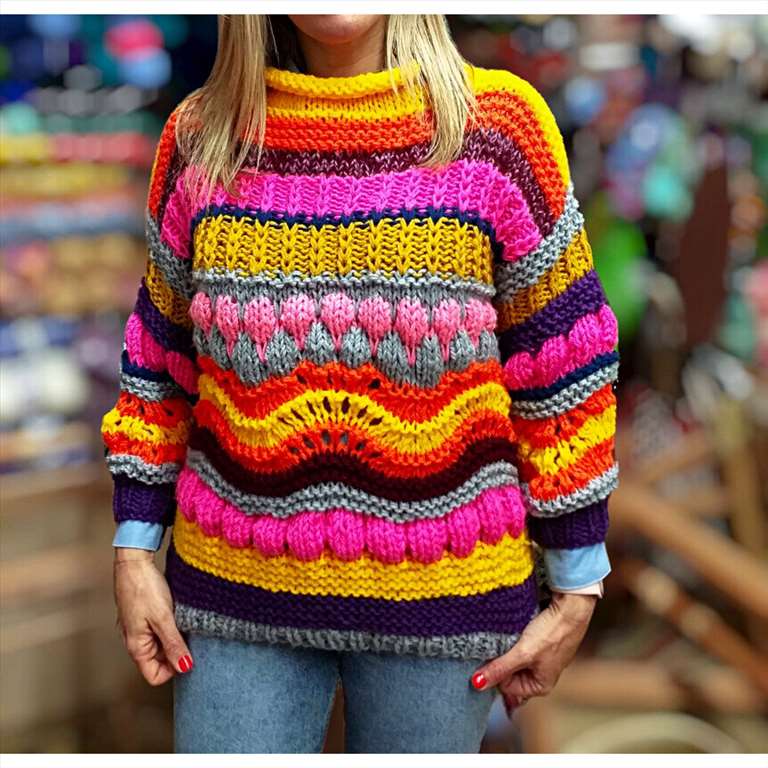 Αυτό το πολύχρωμο ζεστό πουλόβερ πλέχτηκε με πολύ κέφι και έμπνευση!