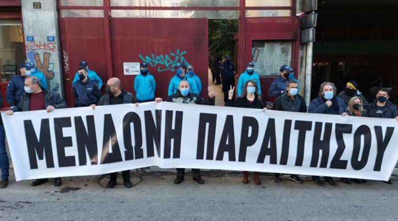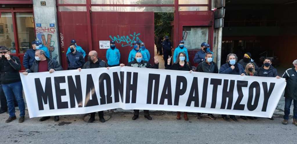 Με φόντο τις τελευταίες εξελίξεις στην υπόθεση του Δημήτρη Λιγναδή και τους χειρισμούς της Λίνας Μενδώνη, αντιπροσωπεία της Πανελλήνιας Ομοσπονδίας Θεάματος Ακροάματος βρίσκεται αυτή την ώρα έξω από το υπουργείο Πολιτισμού στο κτήριο της οδούς Μπουμπουλίνας στα Εξάρχεια κι έχει ανοίξει πανό με το οποίο ζητά την παραίτηση της υπουργού.