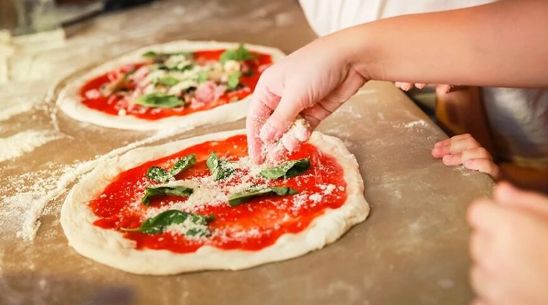 Χωρίστε τη ζύμη στη μέση και σχηματίστε κάθε μισό σε μπάλα. Τοποθετήστε κάθε μισό σε ένα μπολ που έχει λαδωθεί και καλύψτε το με διάφανη μεμβράνη για 45 λεπτά σε θερμοκρασία δωματίου. Προθερμάνετε το φούρνο στους 250 βαθμούς.