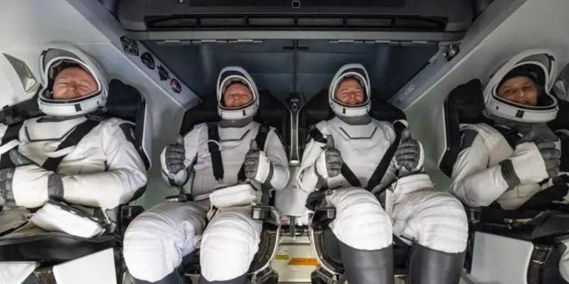 Οι τέσσερις αστροναύτες βγήκαν σταδιακά από την κάψουλα και οι ειδικοί της NASA τους βοήθησαν να ανέβουν σε φορεία.