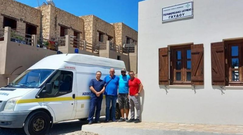 Ένα χρόνιο αίτημα των κατοίκων και επισκεπτών της νήσου Γαύδου ικανοποιήθηκε σήμερα από τη Διοίκηση της 7ης Υγειονομικής Περιφέρειας Κρήτης με την παράδοση ενός ασθενοφόρου οχήματος για τις ανάγκες επείγουσας προνοσοκομειακής φροντίδας του Περιφερειακού Ιατρείου Γαύδου. Ένα πλήρως εξοπλισμένο ασθενοφόρο όχημα, που μέχρι σήμερα κάλυπτε τις ανάγκες του Κέντρου Υγείας Αγίας Φωτεινής, παραδόθηκε από το στέλεχος αυτού κο Παλιεράκη Παναγιώτη στο Γενικό Ιατρό του Περιφερειακού Ιατρείου Γαύδου, κο Αμβροσιάδη Βασίλειο. Με τη συνδρομή στελέχους των ενόπλων δυνάμεων, το οποίο θα αξιοποιηθεί ως οδηγός του οχήματος, το ασθενοφόρο όχημα θα συνεπικουρήσει το έργο των Ιατρών του Περιφερειακού Ιατρείου, ενισχύοντας το αίσθημα ασφάλειας του τοπικού πληθυσμού για την αντιμετώπιση Υγειονομικών αναγκών και συνεπώς, στη βελτίωση των συνθηκών διαβίωσης και ποιότητας Υγείας αυτού.