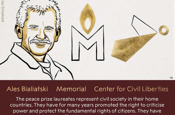 The Norwegian Nobel Committee has decided to award the 2022 #NobelPeacePrize to human rights advocate Ales Bialiatski from Belarus, the Russian human rights organisation Memorial and the Ukrainian human rights organisation Center for Civil Liberties. #NobelPrize pic.twitter.com/9YBdkJpDLU— The Nobel Prize (@NobelPrize) October 7, 2022