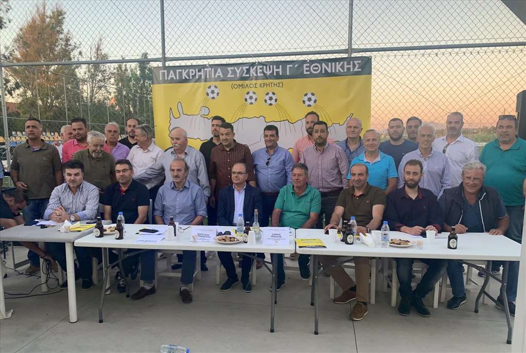 Στην Παγκρήτια σύσκεψη εκπροσώπων των ομάδων του κρητικού ομίλου της Γ’ εθνικής περιόδου 2020/2021 και των Ενώσεων της Κρήτης, η οποία πραγματοποιήθηκε την Παρασκευή το απόγευμα στις εγκαταστάσεις του Άρη Ρεθύμνου στα Μισίρια παρέστη το σωματείο του Αγίου Νικολάου, όπου εκπροσωπήθηκε από τον υπεύθυνο του ποδοσφαιρικού τμήματος Μάνο Μακράκη.