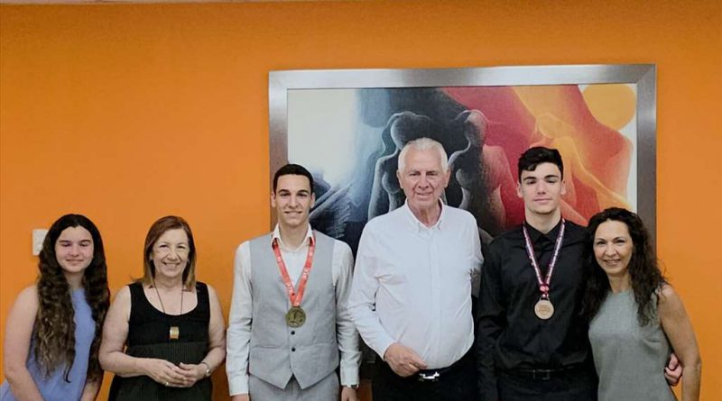 Ο Δήμαρχος Περιστερίου Ανδρέας Π. Παχατουρίδης, τίμησε δύο σπουδαίους μαθητές της πόλης, τα αδέλφια Κυριάκο και Μιχαήλ Τσουρέκα, απονέμοντάς τους το επίσημο σήμα με το έμβλημα του Περιστερίου, αναγνωρίζοντας τη διαχρονική τους αριστεία και τις εντυπωσιακές διακρίσεις τους σε εθνικούς και διεθνείς διαγωνισμούς.