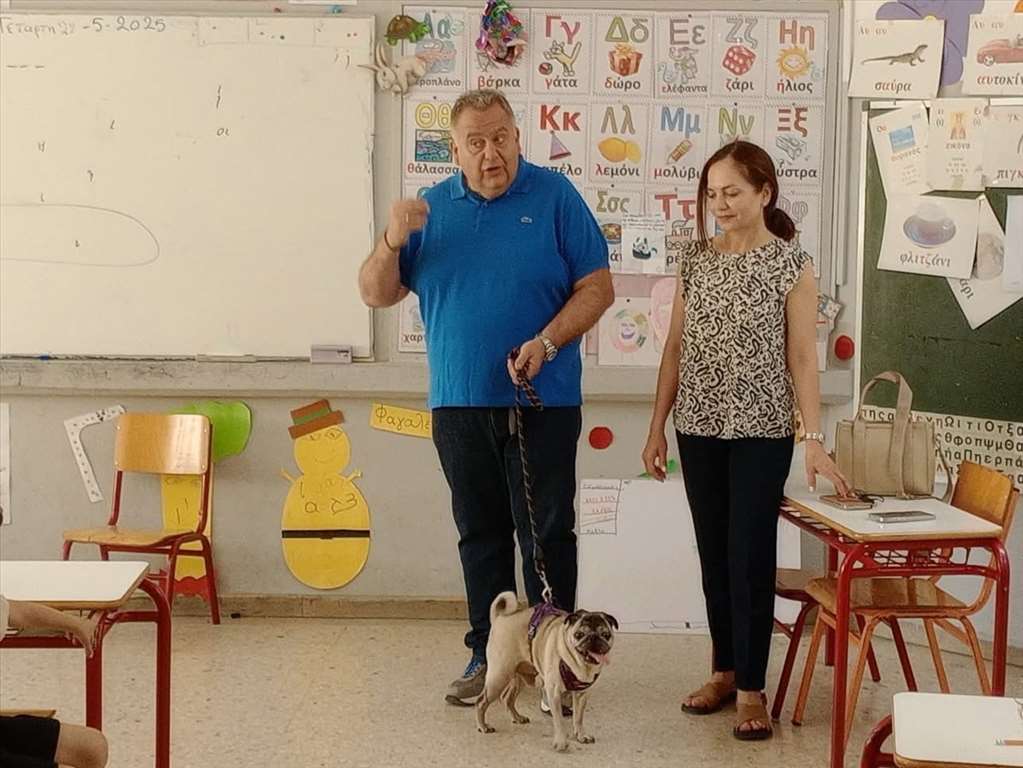 Ο Δήμαρχος Γιάννης Τομπούλογλου σε εκστρατεία ευαισθητοποίησης των μαθητών μας για τη φιλοζωία