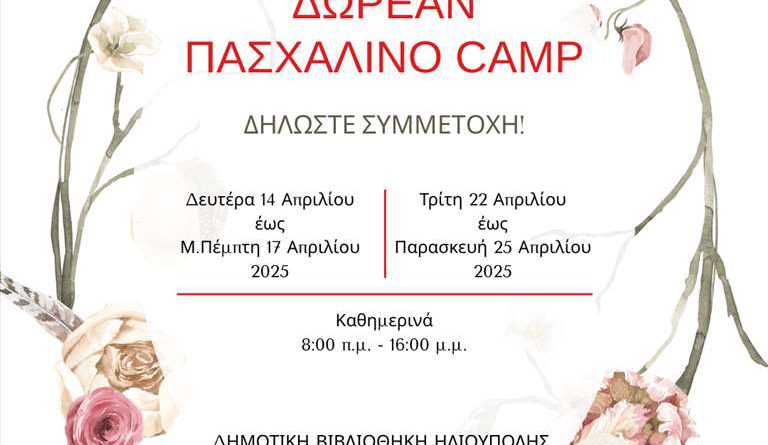 Ο ΔΗΜΟΣ ΗΛΙΟΥΠΟΛΗΣ ΔΙΟΡΓΑΝΩΝΕΙ ΔΩΡΕΑΝ 8ΗΜΕΡΟ ΠΑΣΧΑΛΙΝΟ CAMP ΣΤΗ ΔΗΜΟΤΙΚΗ ΒΙΒΛΙΟΘΗΚΗ