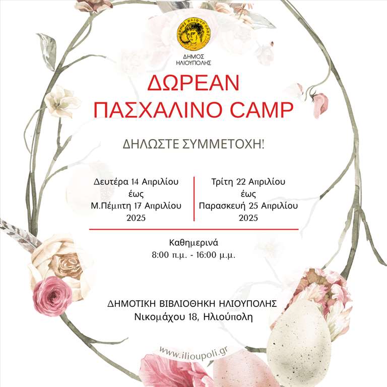 Ο ΔΗΜΟΣ ΗΛΙΟΥΠΟΛΗΣ ΔΙΟΡΓΑΝΩΝΕΙ ΔΩΡΕΑΝ 8ΗΜΕΡΟ ΠΑΣΧΑΛΙΝΟ CAMP ΣΤΗ ΔΗΜΟΤΙΚΗ ΒΙΒΛΙΟΘΗΚΗ