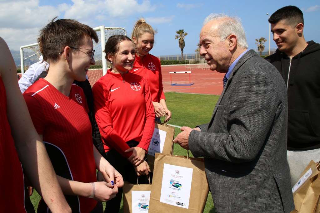 Μετά την ολοκλήρωση της επίσκεψης ο Δήμαρχος αντάλλαξε με τους αθλητές αναμνηστικά δώρα.