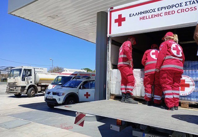 O Ελληνικός Ερυθρός Σταυρός διένειμε 3.000 μπουκάλια εμφιαλωμένο νερό στους πυρόπληκτους