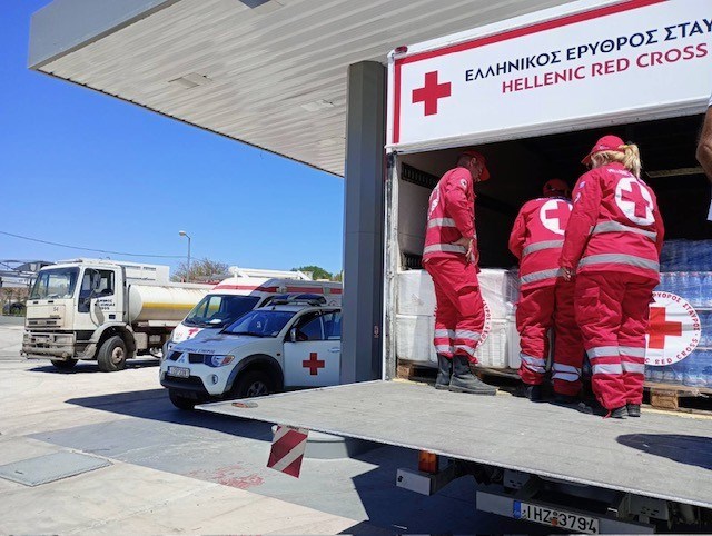 O Ελληνικός Ερυθρός Σταυρός διένειμε 3.000 μπουκάλια εμφιαλωμένο νερό στους πυρόπληκτους