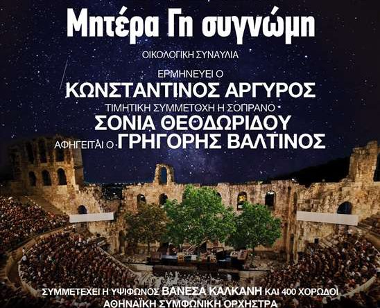 Ο Ελληνικός Ερυθρός Σταυρός παρουσιάζει μια μεγάλη συναυλία για το περιβάλλον και την κλιματική αλλαγή, την Δευτέρα 18 Σεπτεμβρίου στο Ηρώδειο, με το έργο του συνθέτη Πασχάλη Τόνιου «Μητέρα Γη Συγνώμη»