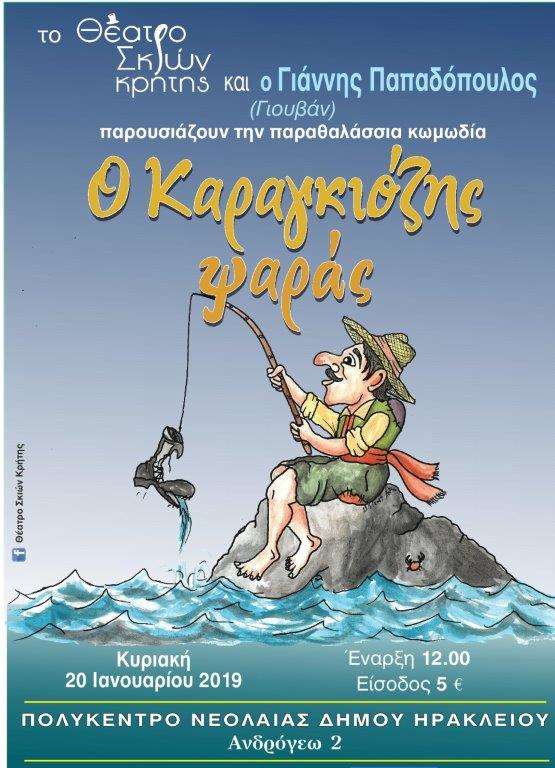Την Κυριακή 20 Ιανουαρίου στον όμορφο χώρο του Πολύκεντρου Νεολαίας, το Θέατρο Σκιών Κρήτης σας προτείνει αξέχαστες στιγμές με την παραθαλάσσια κωμωδία «Ο Καραγκιόζης Ψαράς»!