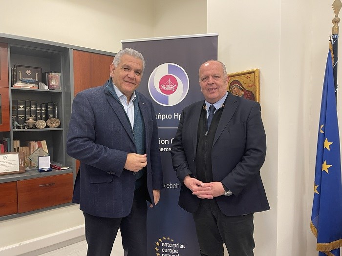 Η περεταίρω συνεργασία για αποτελεσματική στήριξη της εξαγωγικής επιχειρηματικής δραστηριότητας των μελών του Επιμελητηρίου Ηρακλείου συζητήθηκε κατά την πρώτη επίσημη συνάντηση του Προέδρου του Συνδέσμου Εξαγωγέων Κρήτης και Προέδρου του Πανελλήνιου Συνδέσμου Εξαγωγέων κ. Αλκιβιάδη Καλαμπόκη, με τον νεοεκλεγέντα Πρόεδρο του Επιμελητηρίου Ηρακλείου κ. Βαγγέλη Καρκανάκη.