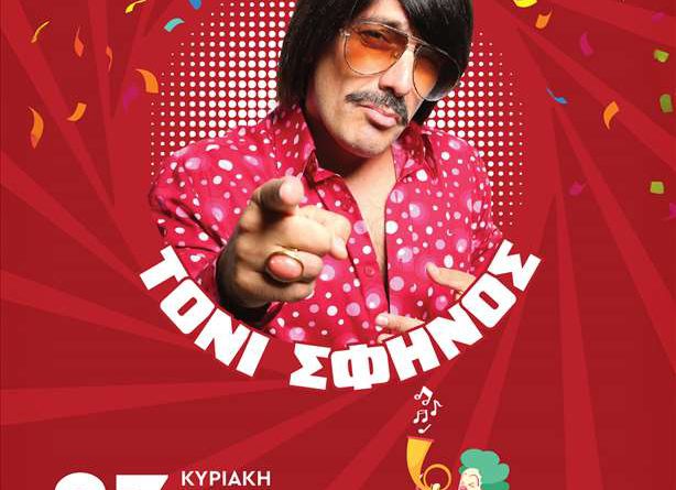 Η μεγάλη έκπληξη που θα μας περιμένει μικρούς και μεγάλους, μετά την ολοκλήρωση της καρναβαλικής παρέλασης είναι ο ένας και μοναδικός Τόνι Σφήνος, με μια εκρηκτική μουσική συναυλία που έρχεται να μας απογειώσει!