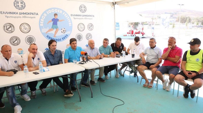 Η «αναβίωση», με αγώνα ποδοσφαίρου στην άμμο, θα ολοκληρώσει αύριο το βράδυ το 4ήμερο Παγκρήτιο Beach Soccer Festival, στο Karteros Beach Sports Center και οι διοργανωτές του (σύσσωμη η οικογένεια του ΟΦΗ -Ερασιτέχνης, Παλαίμαχοι με την υποστήριξη της ΠΑΕ- ο αθλητικός σύλλογος «Ευγένιος Γκέραρντ», το ΕΑΚ Ηρακλείου και η Οργανωτική Επιτροπή των 3ων Μεσογειακών Παράκτιων Αγώνων «Ηράκλειο 2023»), παρέθεσαν Συνέντευξη Τύπου, παρουσία του Υφυπουργού Αθλητισμού, Λευτέρη Αυγενάκη.