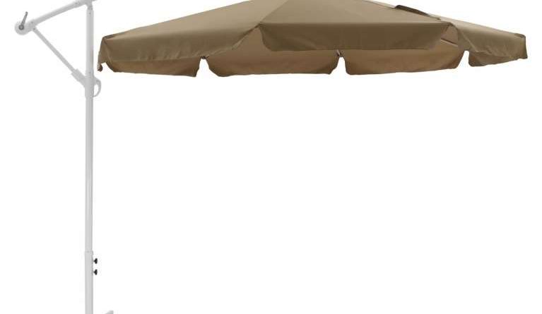 Ομπρέλα Φ3.00μ. στρόγγυλη κρεμαστή τύπου μπανάνα με αναβατόριο, σε μόκα και λευκή απόχρωση.