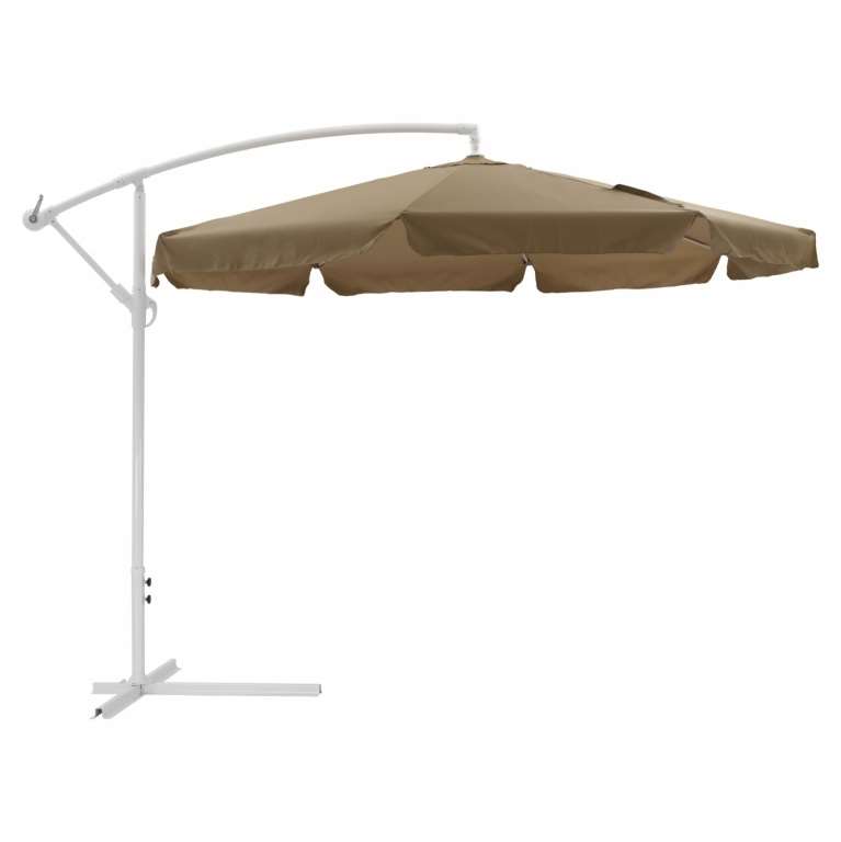 Ομπρέλα Φ3.00μ. στρόγγυλη κρεμαστή τύπου μπανάνα με αναβατόριο, σε μόκα και λευκή απόχρωση.