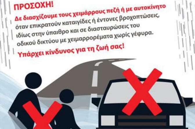 Μην διασχίσετε χείμαρρο πεζή ή με αυτοκίνητο.