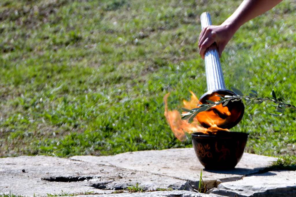 Τα σύννεφα δεν επέτρεψαν στο Ιερό Φως να γεννηθεί από το κάτοπτρο και χρησιμοποιήθηκε η Φλόγα από την Επίσημη Πρόβα. Στη συνέχεια η Πρωθιέρεια Μαίρη Μηνά, τη μεταλαμπάδευσε στον πρώτο Λαμπαδηδρόμο, τον Ολυμπιονίκη Στέφανο Ντούσκο και στέλνοντας τα μηνύματα της ειρήνης, της φιλίας και της αλληλεγγύης σε όλη την οικουμένη.