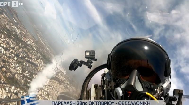 Στην παρέλαση της 28ης Οκτωβρίου στην Θεσσαλονίκης πέταξε και πάλι η Ομάδα Επιδείξεων «ΖΕΥΣ» της Πολεμικής Αεροπορίας, με τους ακροβατικούς ελιγμούς ακριβείας. Ο πιλότος που έσκισε τους αιθέρες και έκανε εντυπωσιακούς ελιγμούς με ένα F-16C Block 52+ ήταν ο σμηναγός, Γεώργιος Σωτηρίου.