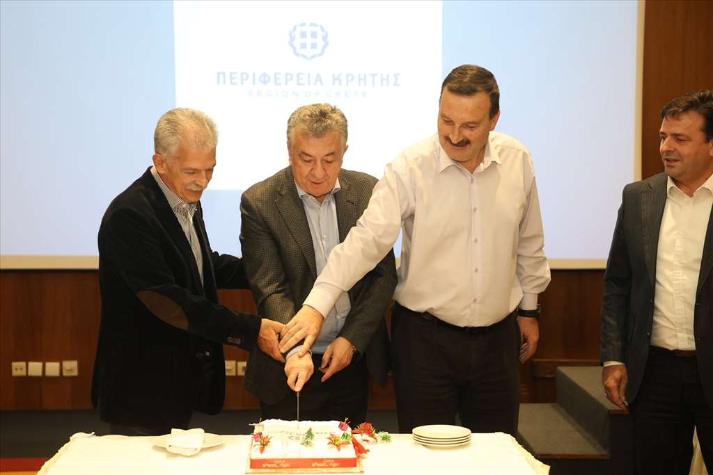 Προηγήθηκε η κοπή της Αγιοβασιλόπιτας από τον Περιφερειάρχη Κρήτης Σταύρο Αρναουτάκη και τους επικεφαλής των συνδυασμών της μειοψηφίας Σπύρο Δανέλλη και Αλέκο Μαρινάκη και οι ευχές για τη νέα χρονιά και τη νέα θητεία που ξεκινά για την Περιφέρεια Κρήτης.