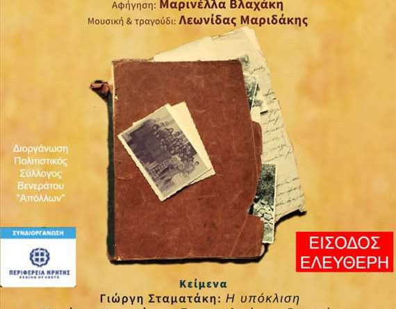 Θεατρική παράσταση «Όντεν επήγαινα σκολειό» με τη στήριξη της Περιφέρειας Κρήτης.