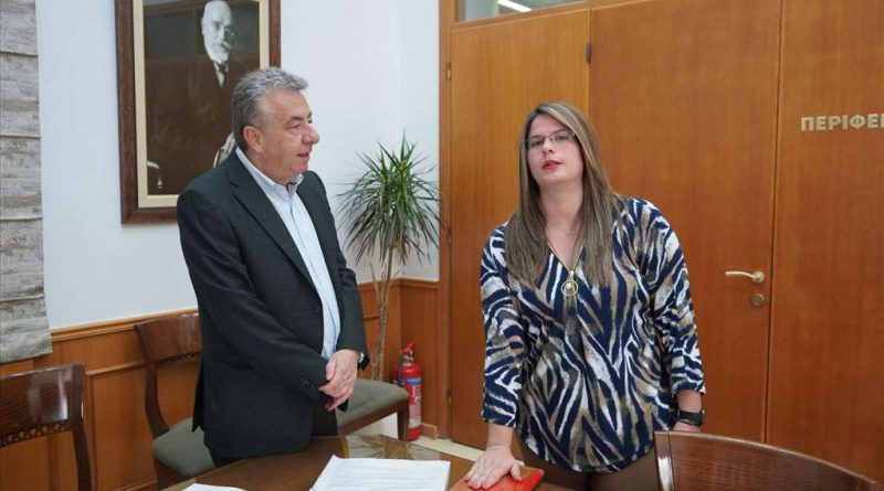 Σήμερα ο Περιφερειάρχης Κρήτης Σταύρος Αρναουτάκης όρκισε την Κωνσταντινιά Ρομπόλα παρουσία της διευθύντριας διοίκησης και ανθρώπινου δυναμικού Βάσως Γαβρήλου.