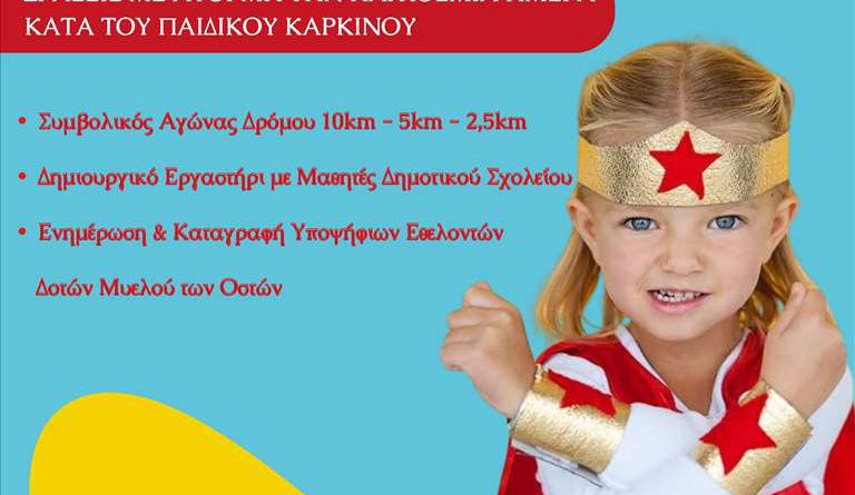 Συμβολικός Αγώνας αποστάσεων 2,5χλμ, 5χλμ και 10χλμ, για μικρούς και μεγάλους.Γιορτάζουμε αυτή την ημέρα, τρέχουμε/περπατάμε για τα παιδιά που πάσχουν από καρκίνο και προωθούμε το μήνυμα: “Γίνε Δότης Μυελού των Οστών!”. Η συμμετοχή είναι δωρεάν και αποκλειστικά αφιερωμένη στους μικρούς αυτούς ήρωες που δίνουν καθημερινά τον δικό τους αγώνα. Κάθε συμμετέχοντας μπορεί να επιλέξει τα χιλιόμετρα που επιθυμεί (από τα προτεινόμενα: 2,5χλμ, 5χλμ και 10χλμ αντίστοιχα) και να τα “τρέξει” ή να τα “περπατήσει” σε όποια περιοχή διαλέξει και όσες φορές κι αν το αποφασίσει από τις 15 έως τις 25 Φεβρουαρίου 2024. Για τη δήλωση συμμετοχών οι ενδιαφερόμενοι πρέπει να συμπληρώσουν την φόρμα συμμετοχής: https://forms.gle/DkMjR1Hgdir9v1A87