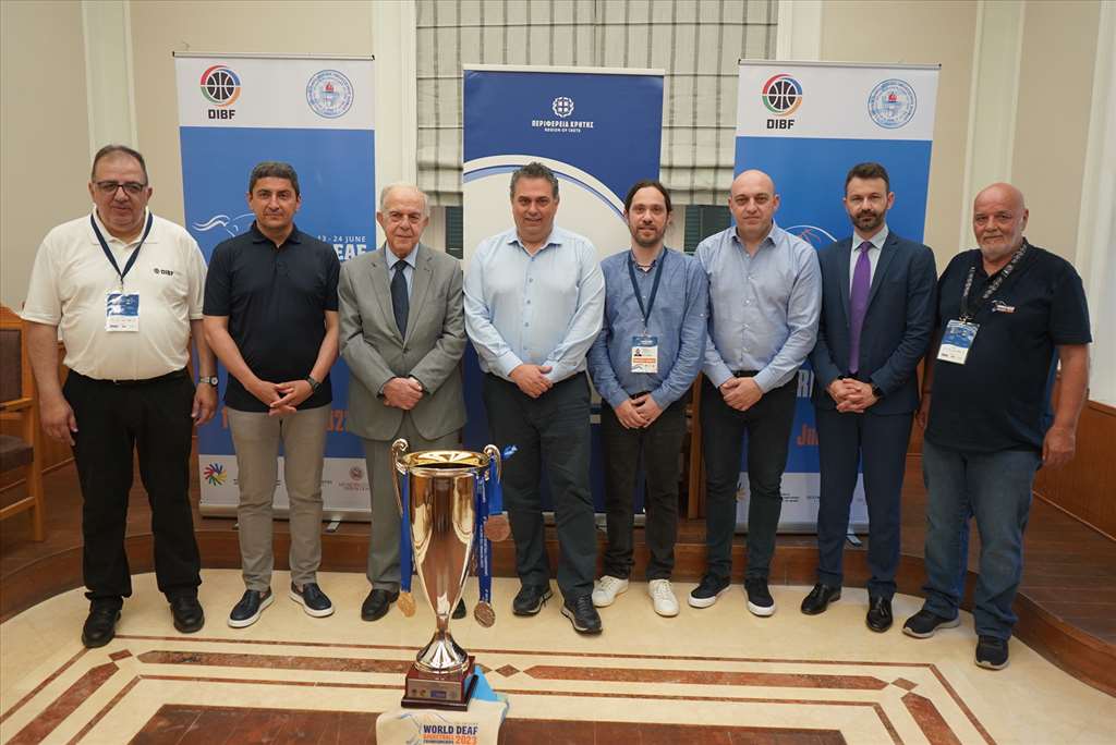 Από το Κεντρικό Κτήριο της Περιφέρειας Κρήτης και τη συνέντευξη Τύπου, της παρουσίασης του Παγκοσμίου Πρωταθλήματος Καλαθοσφαίρισης Κωφών, σήμερα (Δευτέρα 12 Ιουνίου) άρχισε η αντίστροφή μέτρηση για τη μεγάλη διοργάνωση που θα φιλοξενηθεί από αύριο (13/6) έως τις 24 Ιουνίου, στα γήπεδα του Λίντο και τα Δύο Αοράκια.
