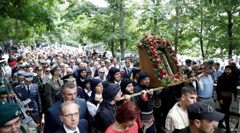 Με την Αρχιερατική Θεία Λειτουργία, τη λιτανεία της εικόνας της Παναγίας Σουμελά και την κατάθεση στεφάνων στην προτομή του Αλέξανδρου Υψηλάντη κορυφώθηκαν οι εορταστικές εκδηλώσεις του Δεκαπενταύγουστου στην ιερά Μονή της Παναγίας Σουμελά στη Καστανιά Ημαθίας.
